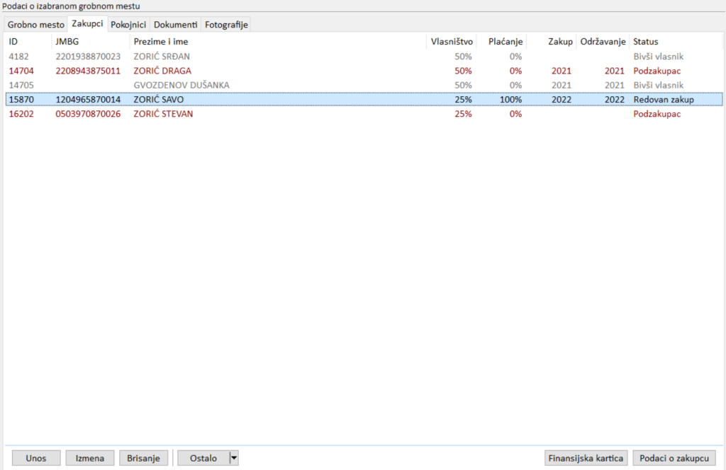 Zakupci Print Unos novog zakupca grobnog mesta Izmena podataka o zakupcu za grobnog mesta Prebacivanje zaduženja na drugog zakupca Doc navigation← Grobno mestoPokojnici → Updated on 28. februar 2023. Was this article helpful to you? How can we help? Name Email subject message